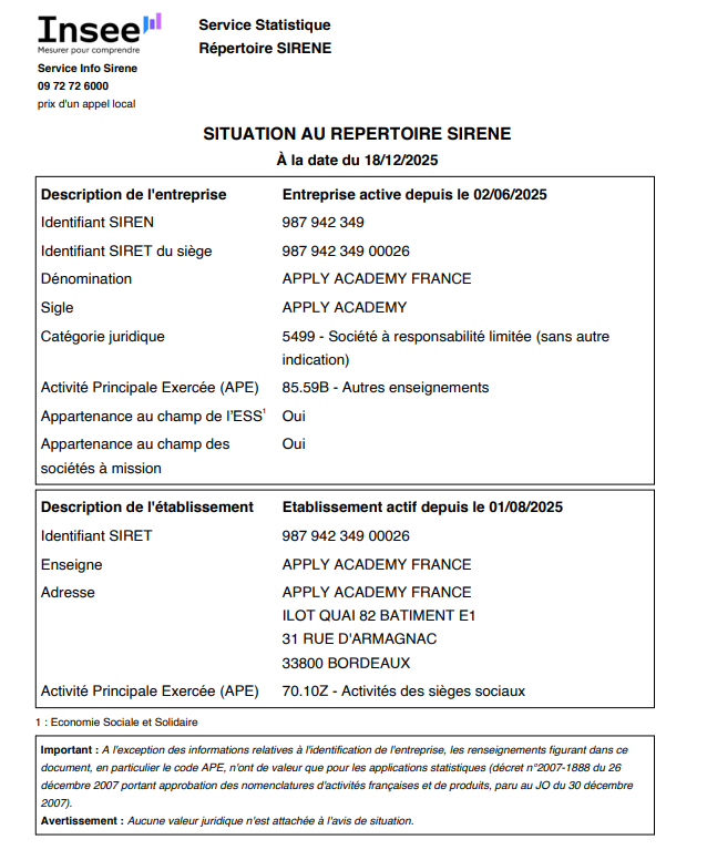 موسسه مهاجرتی اپلای آکادمی فرانسه در سال ۲۰۲۰ تحت امتیاز آکادمی زبانهای خارجه langauge11 شروع به فعالیت کرد. پس از ۳ سال فعالیت موفق و برگزاری صدها دوره زبان و ارائه خدمات آموزشی به بیش از ۴۰۰۰ زبان آموز و کارافرینی برای ۳۰ مدرس زبان، اخذ ده ها پذیرش و بورسیه برای رشته ها و مقاطع مختلف تحصیلی و دوره های زبان ، تصمیم به تجمیع خدمات و ارائه سرویس های با کیفیت تر و منسجم تر گرفت. به همین منظور موسسه در کشور فرانسه ثبت قانونی گردید تا به صورت رسمی و طبق قوانین کسب و کار در فرانسه به فعالیت خود ادامه دهد.